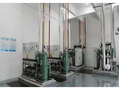 (3)制冷設(shè)備全部來自組裝廠家上海兆雪,萊富康壓縮機(jī)頭;冷風(fēng)機(jī)選用百爾,蒸發(fā)冷廠家:浙江萬享;選用R507A環(huán)保制冷劑;融霜方式:穿堂為自然融霜,冷藏庫和低溫庫為熱氟融霜,機(jī)房在一樓設(shè)一單獨(dú)設(shè)備間,蒸發(fā)冷置于樓頂。